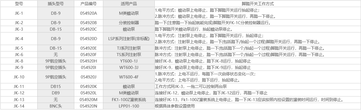 根據(jù)蠕動(dòng)泵的性能,一般可以提供電平和脈沖兩種控制方式。電平:踩下為開(kāi),抬起為關(guān)脈沖:踩下抬起為開(kāi),再次踩下抬起為關(guān)。