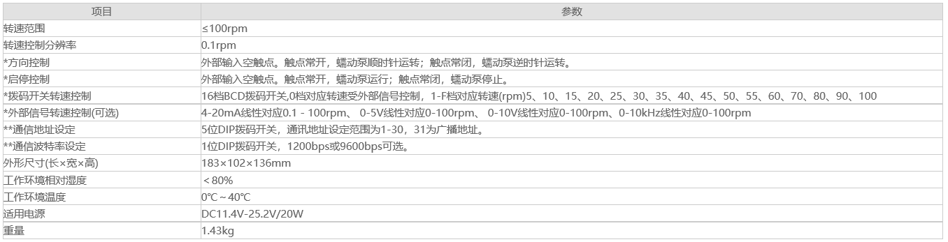 說明:*項目為撥碼開關(guān)結(jié)合外部信號控制方式所特有