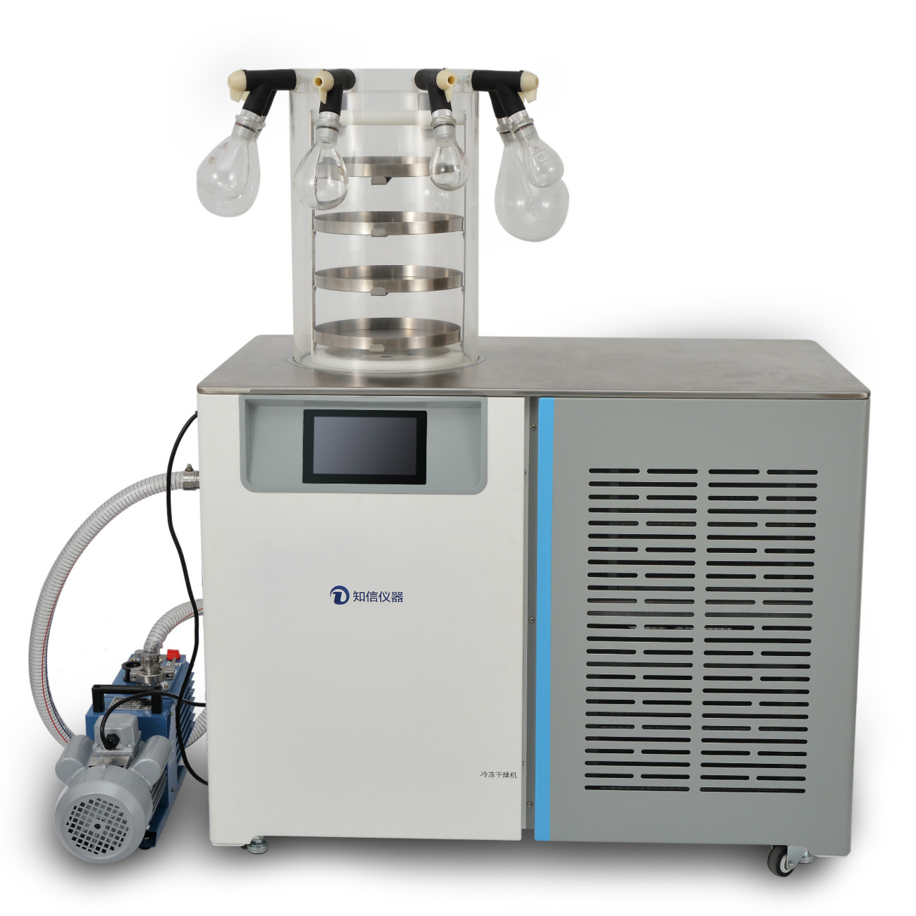 同時(shí)最多掛瓶為8個(gè),分為以下4種規(guī)格:500ml、250ml、100ml、50ml,可根據(jù)需要自由組合, 凍干過程中可隨時(shí)更換凍干瓶, 同時(shí)凍