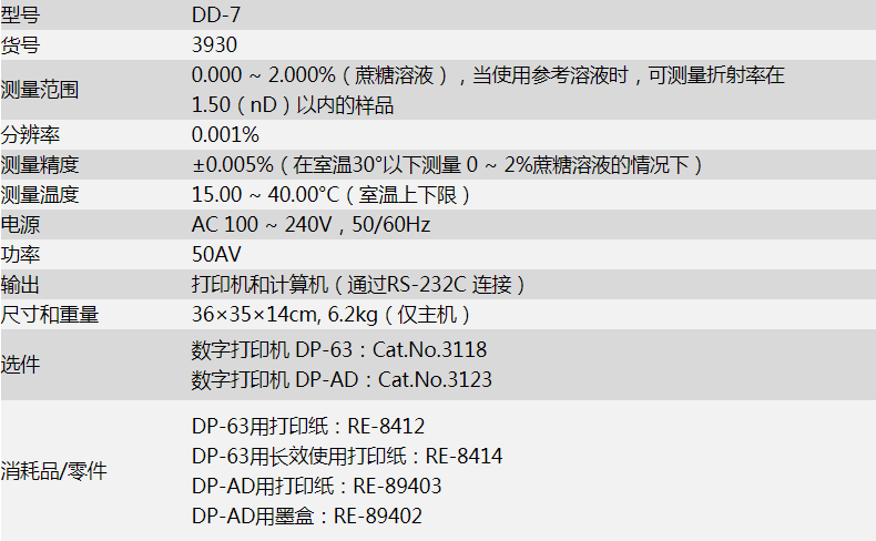 | 測(cè)量精度 | ±0.005%(在室溫30°以下測(cè)量0~2%蔗糖溶液的情況下) |