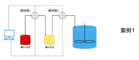 客戶要求Ni離子溶液的流量需要隨著時間線性遞減,而Mn離子溶液的流量需要隨著時間線性遞增。那么客戶可以選擇用兩臺智能泵,輸送Ni離子的泵用勻減速模塊,而Mn離子的泵用勻加速模塊。兩臺泵同時啟動,就可以制備出滿足要求的全濃度梯度結(jié)構(gòu)的鋰電池材料。